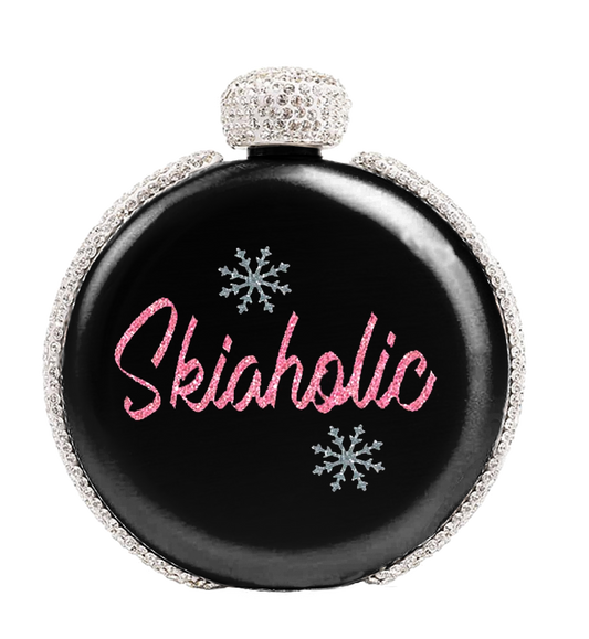 SKI-A-HOLIC Rhinestone Emblazoned 5 ounce Flask