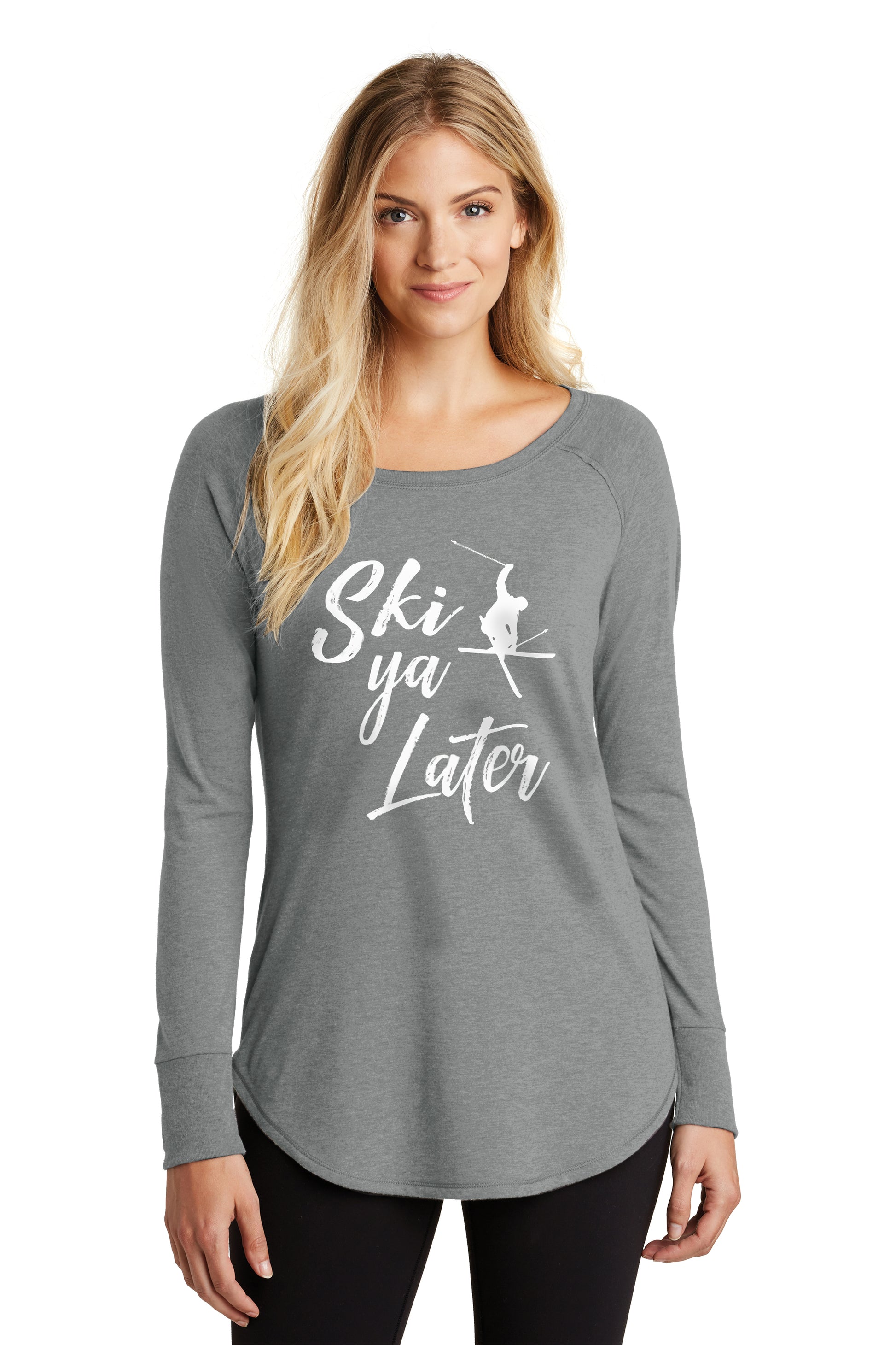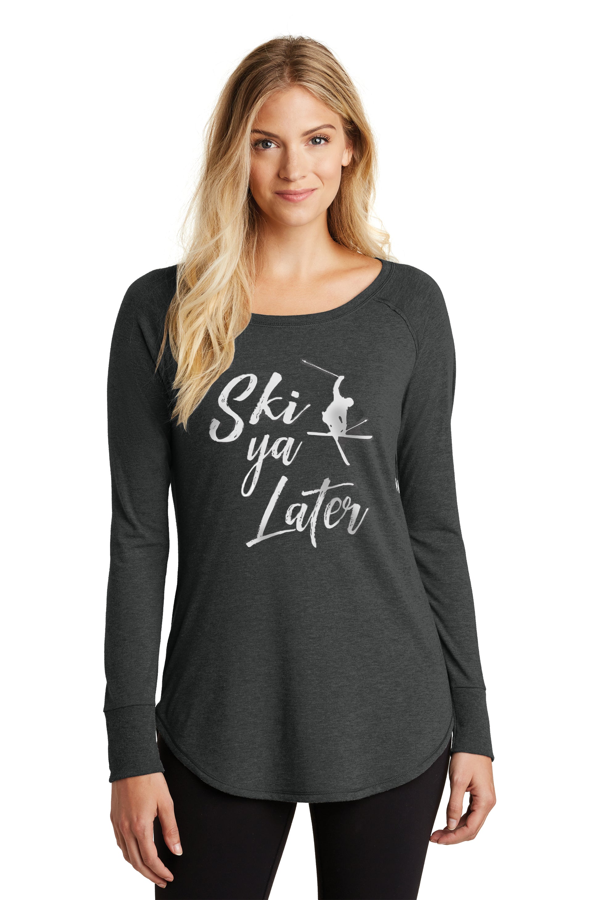 What a fun shirt to wear after a great day of skiing! Super comfortable ladies tee with great graphics. Make sure to add our new SKI YA LATER Crossbody Bag.